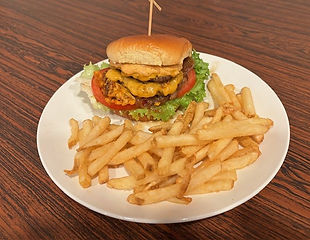 Two 3 oz Angus Beef Patties, Cheddar, Lettuce, Tomato, Caramelized Onions and House Made Sauce